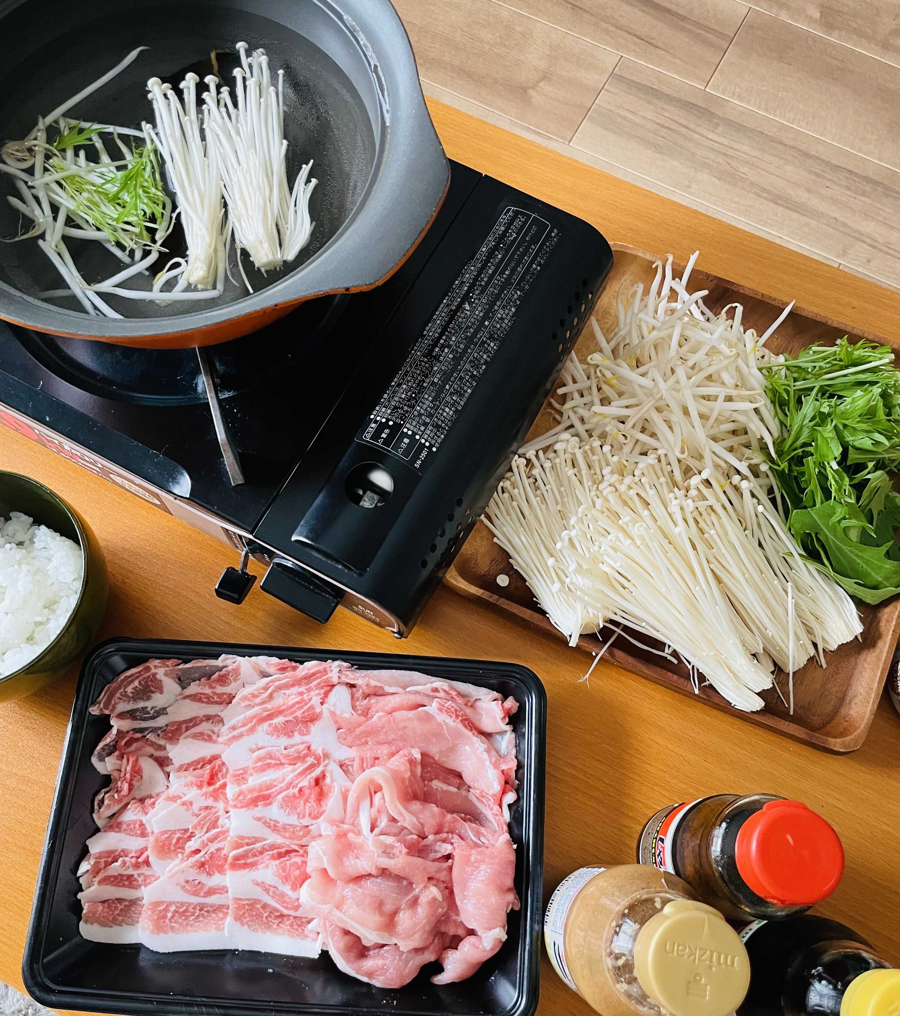 しゃぶしゃぶ準備完了!!15時から乾杯です(^^)/伊勢うまし豚という三重のお肉チルドで届きました~甘くてマジで美味しかった!!肩ロース肉はもちろんだけどもも肉も柔らかくて感動した400gくらいかなーお腹いっぱいになったタレは3種類!タレが薄まると美味しくないので薄くなったらすぐに捨てまーす野菜が残ったので鍋で茹でてナムルにしておいたカセットコンロの調子が悪いのでそろそろ買い替えか・・・15年くらい前に会社からパクッてきたやつ・・・カセットコンロは無いと停電になった時にヤバいですねしゃぶしゃぶから3時間後にオムライスみたいなやつを作ってさしあげた腹減るから動くな!って何回言っただろうか・・・倒立したり側転したり部屋の中を走り回ったりなんでそんなに動きたいの?静かになったかと思えば風呂から2時間出てこないダイエットでもしてるんだろうかホットケーキ作るのが面白い!抹茶でニコちゃんハートはやや失敗3枚焼いて冷凍したこれ公文のバック一応これ持って通ってる持ち上げたらいつにも増して重かったズシン!って・・・ギャー!!なにこれ・・・怖い図工で使った石?ビニール袋に入れて持ち帰るはずが袋を忘れたので公文バックに入れたらしい庭に小高く盛っておいたなんかあやしい雰囲気出しておいた