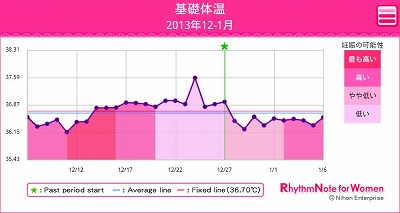 高温期13日目基礎体温さらに上がって37.05(過去のデータを見ると高温期は10~12日で終ってるでの13日での上昇は・・・)めっちゃドキドキしてます。経過をお話すると・・・4月25日に診察して卵胞確認→HCG注射(これまたここまでくるのに24日かかりましたが、クロミッドはお休みしてるので自然排卵+HCGです。)この時期に必ず訪れる検査魔となり・・・夜、眠れず出産予定日まで調べてしまいました。このまま順調に行けば1月17日、帝王切開だから年末か年明けになるのかな?って、ヤバイ!期待しすぎ。明日も体温高ければ母の日記念日にフライング?検査してみたいと思います。こうなってくるとダメだった時のショックが大きいな。神様お願い!