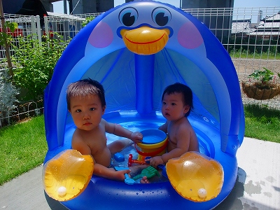 この暑さ、たまらん・・・と言う事で、プール遊びしました。お庭で子供のプール遊びをするのが夢だったのでまたひとつ夢が叶いました。無邪気に遊ぶ子供の姿は見てて飽きないね~テラス屋根の下で、母スマホ片手に写真撮り。(笑)ママ用プールも購入したいくらい激暑な1日でした。