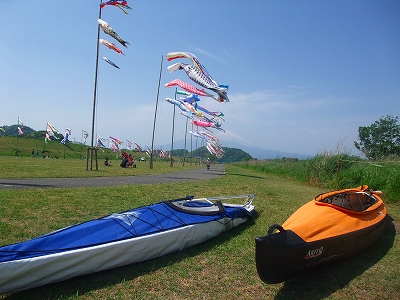 ゴール地点の狩野側ふれあい広場鯉のぼりが気持ち良さそうに遊泳中~!こちらもタイミングが良かったです。