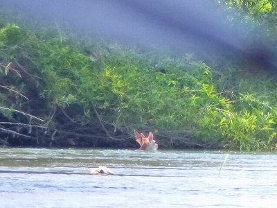 さくら公園→狩野川ふれあい広場(7.1km)(1時間30分のダウンリバーです) 今回もまた絶景のカヤック日和でした。犬が川を泳いでるかと思ったら、な、なんと・・・鹿でした。鹿泳ぎ初めて見た。(笑)