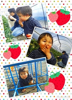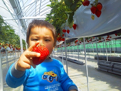 毎年恒例のいちご狩りこの時期はまだ料金が高いけど、そんなの関係ないっ!(笑)久能の苺華園が我が家のお気に入りハウスの間に遊具があったりベンチがあったり、海を眺めながらのんびり過ごせるので小さなお子様連れの方にはお勧めだよ。お母さんまだ食べてるからお父さんと遊んできな~みたいな事ができます。(笑)1歳8ヶ月の櫂ちゃんは無料だけど、食べること・・・大きな苺を丸ごと頬張って、”ハイ、次~!”みたいな。(笑)いちごのことを”ご”って言うところがまた可愛い、”いち”はまだ言えないから”ご”になるんだけどね。母には通じてるから大丈夫よ!^^次は3月15日お父さんのお誕生日も毎年恒例なので、今度は掛川のピーターパンにGOです!