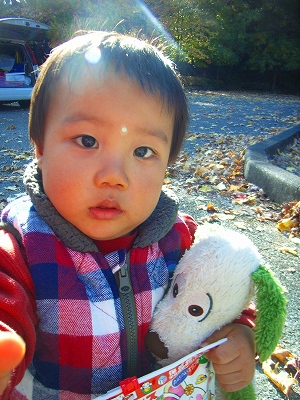 1歳6ヶ月健診に行ってきました。身長;84、5cm 体重;12、15kg頭囲;50、5cm 胸囲;48、9cm同じ時期に生まれたはずなのに?いろんな子が居てびっくり。そんな中で人見知りの激しい櫂はお母さんにべったりで・・・^^それでも身長体重は人よりもずば抜けて大きい方みたいで、ハイ、立派に育ってました!↑ご覧の通りです。(笑)1歳4ヶ月の日記を読み返してみると、2ヶ月の間に出来る事がいっぱい増えて・・・例えば!ウンチをするとオムツとお尻拭きを持ってくる。(ビニール袋まで持ってきてくれたら完璧なんだけどね・・・^^)指先が器用になり、窓の鍵を開けたり閉めたり、ネジの付いた玩具を自分で回して走らせる。自分で服を着ようとする。靴を履こうとする。スプーンやフォーク持ち自分で食べる。(食べこぼしがスゴイので私がスプーンでフォローしながらフォークで食べる練習させてます。)少しだけ玩具のお片付けができるよになりました。片付けしてから出かける習慣を身につけさせてます。ナイナイ言いながら散らかった玩具を急いで放り込んでる姿がタマリマセン!お昼寝は午後1回に!規則正しい生活!8時に寝て6時に起きる。多少の前後はありますが完璧です!バナナ、ぶどう、言える様になりました。櫂の大好物です。(笑)そして、天気の良い日は公園にGO!日課です。びびりやの櫂ちゃんはやっと遊具で遊べるようになってきたのですが今はお砂場遊びにはまってます。見てるこっちはひたすら寒いです!↑ワンワン大好きです。
