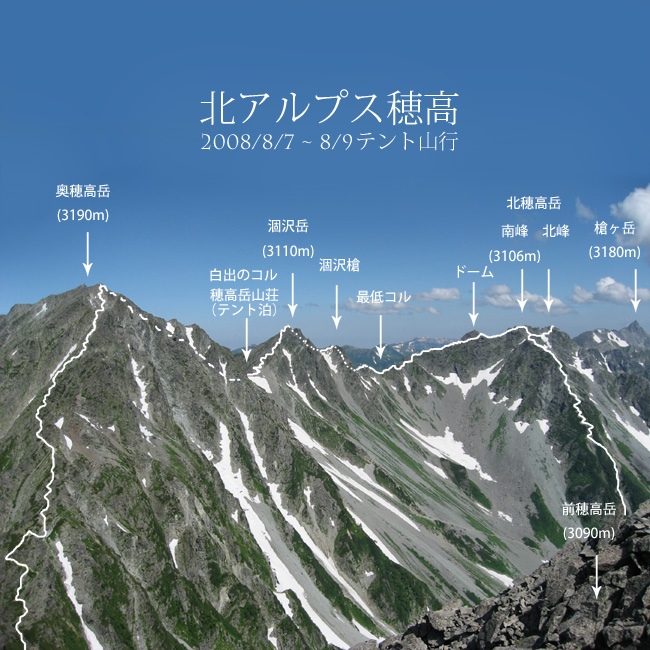 →白出のコル(1泊)→奥穂高岳→吊り尾根→前穂高岳→岳沢→上高地