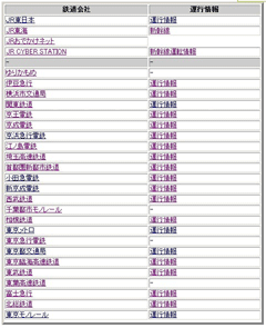 東京周辺の鉄道もだいぶ運転再開してきたようです。最新状況は「YOMIURI ONLINE(鉄道運行状況)」がまとまっていて、便利です。「運転見合わせ」がまだあちこちにあります。また運転していても実際には30分おきに各駅停車のみ運行している場合もあるようなので、調べてから出かけるようにしないと、予定通りにはいかないので注意が必要です。各鉄道会社のホームページを見やすいようにリンク集を作って見ました。東京周辺の鉄道会社(http://bonbonblog.dousetsu.com/Railway.html)いまだにアクセスできない鉄道会社のホームページもあるようです。