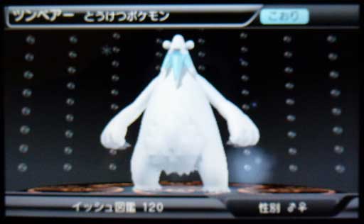 2011年08月21日 22:00今日増えた4匹目のポケモンはツンベアー とうけつポケモンこおりイッシュ図鑑 120です。これで31匹目。