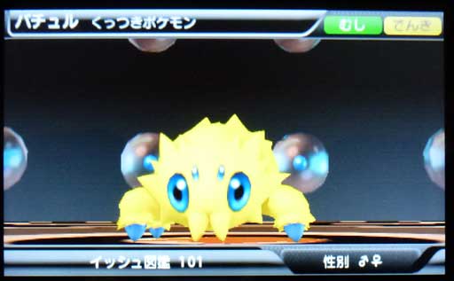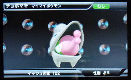 今日はもう一匹増えました。増えたポケモンはチョボマキ マイマイポケモンむしイッシュ図鑑 122です。これで23匹目。
