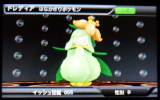 2011年08月21日 9:30 今日増えた3匹目のポケモンは ドレディア はなかざりポケモンくさイッシュ図鑑 055 です。 これで30匹目。