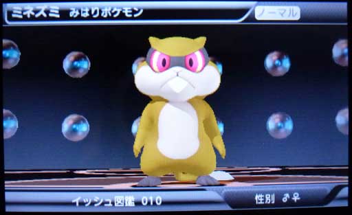 2011年08月25日 0時今日増えたポケモンはミネズミ みはりポケモンノーマルイッシュ図鑑 010です。これで41匹目。
