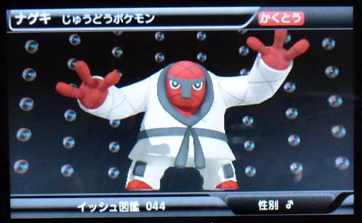 2011年08月19日 今日増えたポケモンはナゲキ じゅうどうポケモンかくとうイッシュ図鑑 044です。これで24匹目。 ------------------------------ポケモンがどんどん届くようなので、ブログのカテゴリに「ポケモン」を追加しました。