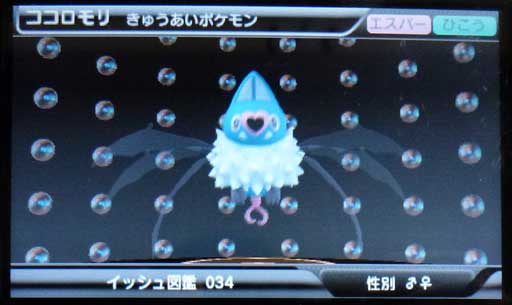2011年08月24日 7時今日増えた3匹目のポケモンはココロモリ きゅうあいポケモンエスパー ひこうイッシュ図鑑 034です。これで39匹目。