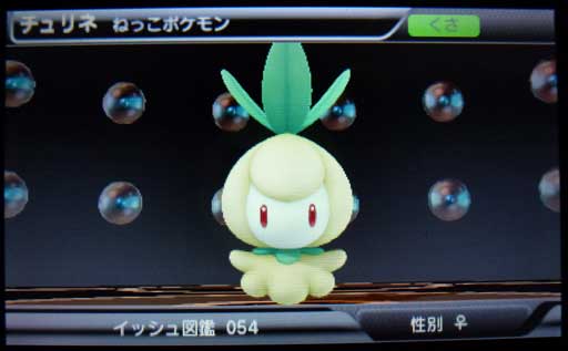2011年08月23日 1時今日増えた2匹目のポケモンはチュリネ ねっこポケモンくさイッシュ図鑑 054です。これで35匹目。