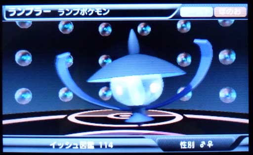 2011年09月24日 1:03今日増えた1匹目のポケモンはランプラー ランプポケモンゴースト ほのおイッシュ図鑑 114です。 これで121匹目