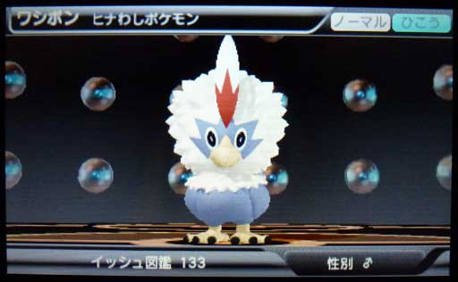 2011年09月27日 01:00 今日増えた1匹目のポケモンは ワシポン ヒナわしポケモンノーマル ひこうイッシュ図鑑 133 です。 これで130匹目