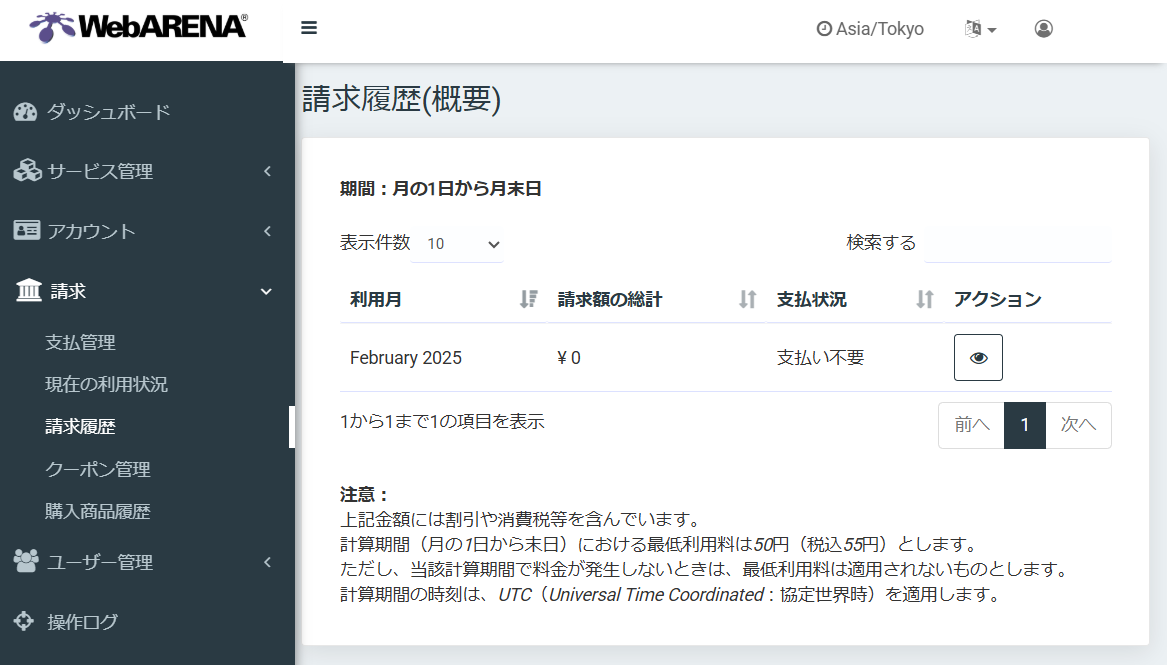 2025/2/18 から使用(試用)開始した VPSサービスの WebARENA Indigoですが、最初の月(2月)の使用実績はつぎのようになりました☆総インスタンス数10個くらいのインスタンスを作成しました。☆インスタンスの種類1個だけ 2G+40GBのインスタンスでほとんどは IPv4が使える最低料金の1G+20GBのインスタンスです。☆使用時間4つのインスタンスは5~8日使用しましたが、ほとんどは使い方がわからない頃に実験的に作成・使用・削除しているので、1時間の利用時間になっていました。(2/18~2/28 は 11日間あるのですが、1GBのインスタンスを作成後、 2GBのインスタンスに引っ越して作業を継続しているので、インスタンス単位でみると、最長8日程度の使用時間です)☆請求いつ使用時間等のデータが見れるようになるのかわからず、3/3(月)までは WebARENAダッシュボードのどこを見てもそれらしいデータはなかったのですが、3/4(火)にWebAreNAの「請求」>「請求履歴」をみると更新されていました請求額の総計=0円支払い状況=支払い不要となっています。(お試しクーポンの500円分をちょっと超えるくらい使ったつもりだったのですが…)「アクション」から詳細表示をすると、500円弱の合計になっていて、500円お試しクーポンで全額支払えたようです。サーバーは知らないうちにリブートしたりすることもなく、快調です。今月(3月)は 1,000円以上使用すると、dポイントが1,000ポイントもらえるはずなので、1,000円以上、使用する予定です。いろいろ実験ができて、実験がおわったらインスタンスを削除してしまえば、インスタンスを使用していない間は料金がかからなくなるので、重宝しそうです。ーーーインスタンスの作成が10分以内におわって、1GB+20GB だと 1時間当たり 0.7円2GB+40GBだと1時間あたり 1.2円ちょっとした実験なら1時間以内にインスタンスを削除してしまえば、本当に 0.7円ですんでしまいます。使用した月には最低料金 55円が必ずかかるようですが、ひと月まったく使用しなければ0円。なにか実験したくなったらインスタンスを作成していろいろためせるので、ずっと契約し続けてよさそうです。ーーー☆実験内容Apacheの実験中ですためしに楽天ブログのアクセス数データを集めて、グラフにしてみました「パソコン・家電」ジャンルのブログなら1位ブログだと…http://140.227.118.53/chart/kazu06sawa02.html2位ブログだと…http://140.227.118.53/chart/ogayasu.htmlのようにして表示できると思います。https でないとか、実験用の運用ですgoogle search consoleに登録してどうなるかとか、実験しています。(固定IPの自前サイトなら登録は簡単みたいですね)そのうちインスタンスは削除するのでこのIPアドレスはアクセスできなくなります。ーーー2025/3/5 9:00 公開2025/3/6 7:30 googleで検索可能ーーー 関連記事 ーーー2025/3/5 VPS(WebARENA Indigo)の2月の使用時間(請求額が確定しました)2025/2/18 VPS(Virtual Private Server)を試してみました(WebARENA Indigoを使ってみました)ーーー 広告 ーーー