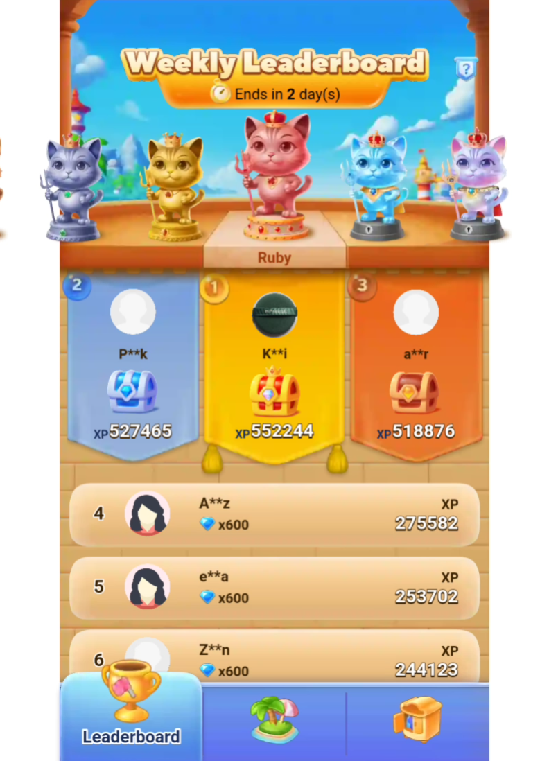 AliExpressアプリのゲーム GoGo Match で 1週間単位でのランキング争いがはじまって、4週目。Weekly Leaderboard の第4週目がはじまりました。Silver ランクから始まって、毎週ランクアップして、今週は Diamondランクでのゲームです。2/18 開始①Silver→ 2/25②Gold→ 3/4③Ruby→ 3/11④Diamond先週のRubyランクの上位3人は 6日間で 70万 XP程度を獲得するハイペースでした。(残り2日で 3人だけ 50万越えの時の画面)自分はそれには遠く及びませんでしたが、Diamondランクになりました。Diamondランクも上位争いは激しく、はじまって 8時間の 23:50現在 すでに6万 XP越えです。今週も上位は前週の最高記録を超えそうです(70万 XPを超えてどこまでいく?)ちなみに Diamond ランクの1位の報酬は 5000 game pointですSilverランクの報酬Goldランクの報酬Rubyランクの報酬Legendaryランクの報酬10,000 game point で $1の割引券と交換できるので、Diamondランクで1位になると $0.5、最上位の Legendary ランクなら 1位になると $1 もらえるということになるはずです。ーーー「Otter's Treasure」といい、ランキングがあると、上位争いが非常に激しくなるようです。(Otter's Treasureは上位は日本人みたいですが…)ーー2025/3/11 23:59 公開ーーー 広告 ーーー