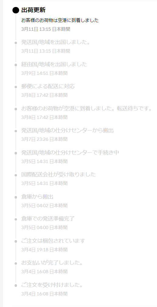 AliExpressの Choice 商品は、 $10 以上になるようにまとめ買いすると、送料が無料になります。今回 SDカードリーダーや M2用ヒートシンクなど、こまごましたものを 合計6点で$10以上になるように注文しました。2025/3/4 に注文して、配送予定日が3/11です。3/5には仕分けセンターに6商品ともたどりついたようなので、安心していたのですが、空港でなにか問題があったのか、空港から先になかなか移動しません。配送予定日に届かなかったので「配送保証」クーポンがもらえました。商品はまだどこかの空港にあって、日本の税関までまだたどりついていないようなので、しばらく状況を見守っていないとあぶなそうです。☆配送遅延保障クーポン配送遅延保障のクーポンは $1 (150円)です。クーポンは配送遅延した商品の注文1件に対して、1枚配布されるので、今回はクーポンが6枚もらえることになりました。合計で 2,000円程度の注文に対して 900円のクーポンがもらえたことになります。その結果、自分のクーポンを確認するとこんな感じにたくさんたまっています1回の購入で1枚ずつしか使えませんが、100yen shop(よりどり)などでの安価な買い物に使えるので、使うタイミングは結構ありそうです。☆ PrizeLand(ラッキーランド)で買い物クーポン一覧を見て、今日が期限の「PrizeLand(ラッキーランド)」のクーポンもあることに気が付きました。せっかくなのでと、PrizeLandのページから商品を眺めていたところ、 (choice商品でない)送料込みで $1.01 の商品を発見しました。これを注文したらどうなるのだろうと、(興味本位で)注文したところ、クーポンの割引がきいて、$0.01 (2円?)で注文完了です。PrizeLandからの注文なので、しばらくして ゲームアイテムの Water(水)が 数万 ml もらえたという通知もありました。さらに $1.00 クーポンももらえました。なんとなく得した気分です。ちなみに Prize Land(ラッキーランド)のクーポンは期限が一日のクーポンです。期限がきれると、また次のクーポンを送ってくる気がします。先日注文した「水やり100%達成」の景品をあわせて、届くのを待っています。ーーー2025/3/12 21:00 公開ーーー 関連記事 ーーー2025/3/12 AliExpressで6点注文したら、1週間以内に届かなくて割引クーポンが6枚もらえました2025/3/9 AliExpressのPrize Land(ラッキーランド)で水やりが100%になったので景品を申し込みましたーーー 広告 ーーー