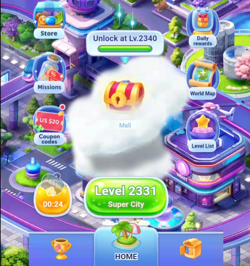 AliExpressアプリで遊べる GoGo Match(ゴーゴーマッチ)更新頻度があがっていて2/24 : ~23202/26 : ~23302/27 : ~2340ーー 前回のブログ3/1 : ~23503/3 : ~23603/4 : ~2370ーー 今回のブログ3/5:~23803/7:~2390 : ~2400…のように更新が続いています2371-23802381-2390…ーーーLevel 2371Level 2372Level 2373Level 2374Level 2375Level 2376Level 2377Level 2378Level 2379Level 2380Level 2381Level 2382Level 2383Level 2384Level 2385Level 2386Level 2387Level 2388Level 2389Level 2390Level 2391Level 2392Level 2393Level 2394Level 2395Level 2396Level 2397Level 2398Level 2399Level 2400Level 2400をクリアすると宝箱をあけてNew levels coming soon の表示になったので、最終レベルに到達ですーーー2025/3/19 19:30 公開ーーー 広告 ーーー