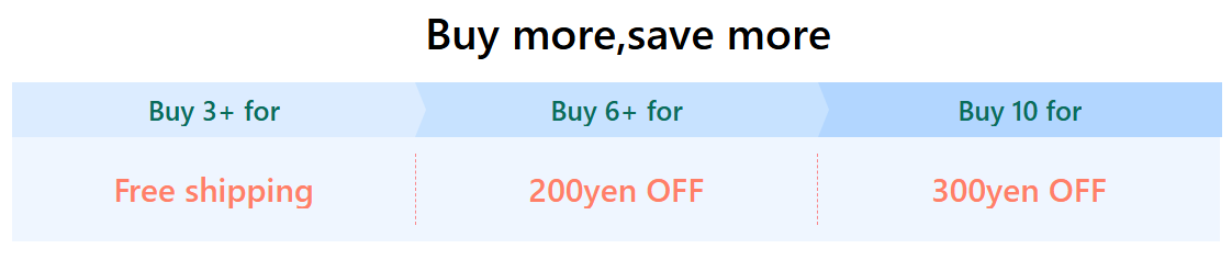 100-Yen Shop(よりどり)では 3点以上購入すると送料無料となって、6点で200円の割引、10点なら300円の割引です。