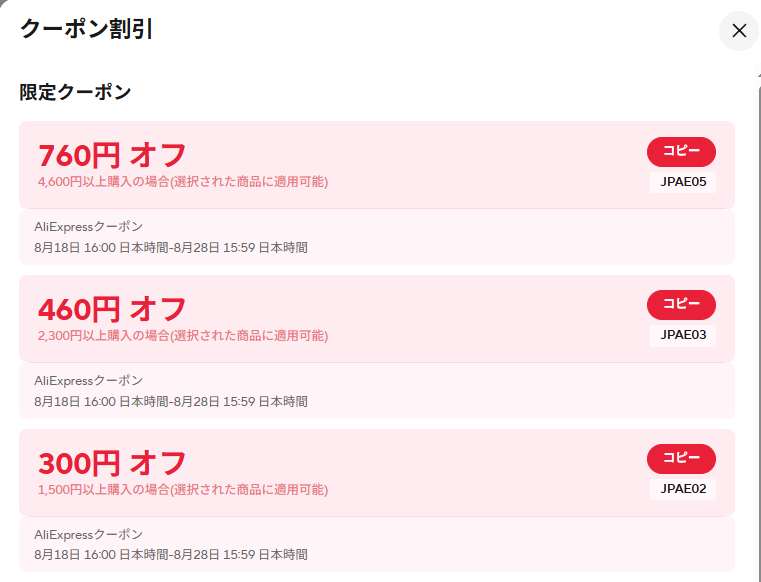 AliExpress で毎月 25日~27日はお財布応… 2025.02.26