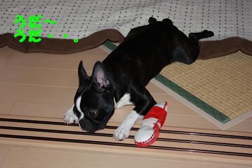 昨日の「うだ~」ネタが好評につき、懲りずに今日も続きを・・。毎度おなじみ、クッション攻撃のあとのYABUTA君です。今週も残すは2日。うだ~としたくなるのも山々ですが、あと少しで土日のお休み。もうちょっとだけ、頑張りましょう!