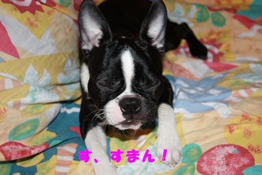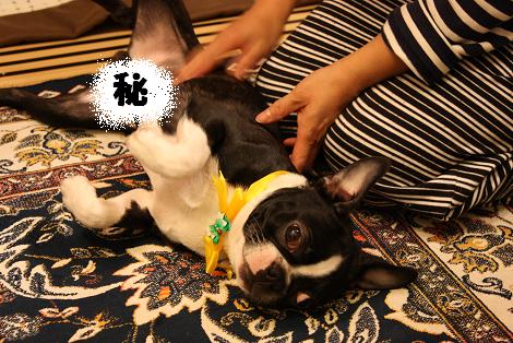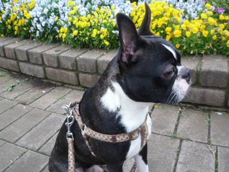 まずは、毎度ではありますが、お正月からすっかりブログが飛んでしまいました・・。スミません。何かと1~3月は忙しかった?のと、やはり大震災もありまして~。被害にあわれた皆様には、心からお見舞い申し上げます。私も、昔、仙台在住の時代があり、仕事を通じて宮城・福島ほかお世話になった方も数知れず・・。震災後は、何と言うことが起こってしまったのか、やはり自粛しなくてはという気ばかりだったのですが、どうか1日も早く、皆様が笑顔を取り戻す日を祈念しております。で、日本の元気付けと言っては何ですが、しばらく遠出もしていなかったので、GWを迎えYABUTA君とペット博に行くことにしました。会場はパシフィコ横浜。しっかり前売り券も買って、渋滞を見越し早めに出たものの会場に着いたのはお昼前。あ、行ったのは昨日です。車で出ました。行く途中で、YABUTA君の休憩兼ねてコンビニ寄ったらママさんから衝撃の一言が~。「ハーネス2本あるけど、リードを忘れた・・。」小型犬とは言え、すでに8kg。ずっと抱っこは無理なので、早速、会場でリードを買いにうろうろ。ハーネス・リードのセットを無事入手し、中をぶらぶら。YABUTA君には初めてのペットショウです。あたりまえですが、人とワンちゃんがいっぱい。白黒のボストンちゃんを見かけると、どちらともなくご挨拶。6匹様くらいとお話したでしょうか。特に女の子のボスちゃんは、皆元気いっぱいでいつもならガウガウうるさいYABUTA君も腰が引けてたような。あとは、おやつを買ったり。試供品もらいにならんだり。そのうちYABUTA君もお疲れ気味だったので、ワンちゃんマッサージへ。人気のコーナーで、1時間くらい待ちました。で、こんなことや。こんなことも・・。ウソです。たまたま撮った写真がおもしろかったので。はじめは抱っこされてのマッサージに抵抗していましたが、最後の方では、コリもとれたようで、気持よさそうでした。ボステリのグッズは、ペットショップでなかなか少ないので(フレンチ様のは見かけます。)オリジナルのバッグをプリントしてくれるお店発見!ママのお土産になりましたとさ・・。さあ、明日から仕事だ。また頑張ろう~。