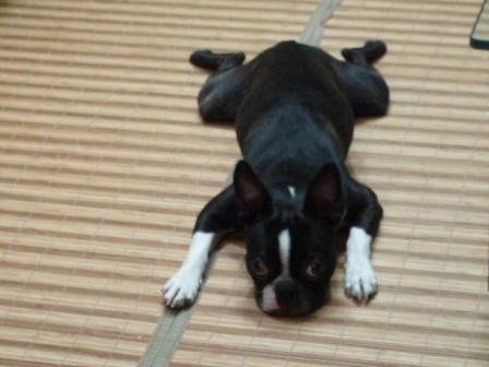 YABUTA君、人がいなくなるのが嫌いみたいで、パパやママがちょっと動くと、足に噛み付き攻撃が出ます。今日も、あまりにひどいので、拉致して散歩へ~。ここの所、パパの散歩はランニングと化しているので(走ると、におい付けや葉っぱに興味が行かない・・)YABUTA君も、散歩から戻るとぐったりです。足噛み攻撃が再発すると、また散歩へー。おかげで、今日は3回の外出となりました。ところで、今日はTV「鉄腕ダッシュ」が犬の調教の特番とか。昔は「こんな犬もいるんだね」と笑いながら見ていましたが、今や我が家も切実な問題・・。一家でじっと見入ることします。