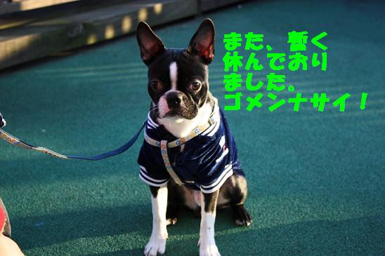 土曜日・・。おニューの服で、またまたドッグランへ~。始めは誰もいなかったので、ガウガウと私の靴とかに飛びかかっていましたが、その後、3組さんほどがお見えになって、結構、運動になりました。でも、うまくお付き合いできた犬さんとか吠えられただけの犬さんとかー。犬の世界も大変なんですね~。ウチのは、例によって、ちょっかい出していただけでしたが・・。