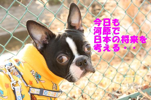 昨日まで、1週間近く風邪で苦しんでおりましたが、ぬれマスクが良かったのか、ぼちぼち体調が戻りました。とは言え、風邪薬を手放せないのに、今日は国立競技場まで久々にラグビーを見に行きました。風は冷たいものの良い天気。国立も6・7割の入りでしょうか。大学選手権の決勝にしては、ややさみしい入りの感もありましたが、意地と意地のぶつかりあい!良い試合だったと思います。それ押せ~と叫んでいるうちに、私の風邪も治ったようです。そのころYABUTA君は、毎度のドッグランへ行かれたそうで。この写真は前回のものですが、散々チワワ様などを追いかけまわしたそうです。1時間だけですが集中して運動するので、夜は早めに休んでくれます。なので、明日もまたドッグランに行くとか。では、早速、他の犬との写真にチャレンジしてみましょうか。