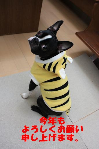 お正月も2日目。穏やかな新年となりました。恒例の箱根駅伝を見ていましたが、すっきりとした青空も広がり、ランナーの皆さんも気持ち良く走れたのではと思います。1年生の実力者も増えましたね~。毎年、楽しみな選手が増えたので、目が離せません。明日も激戦となるのでしょうか?さて、年賀状用に撮影のなかから1枚UPしてみます。白黒のボステリ君には、虎柄が似合っているような~。皆様にとって、今年も良い1年となることを祈念するとともにどうか、これからも変わらぬお付き合いの程、よろしくお願い申し上げます。