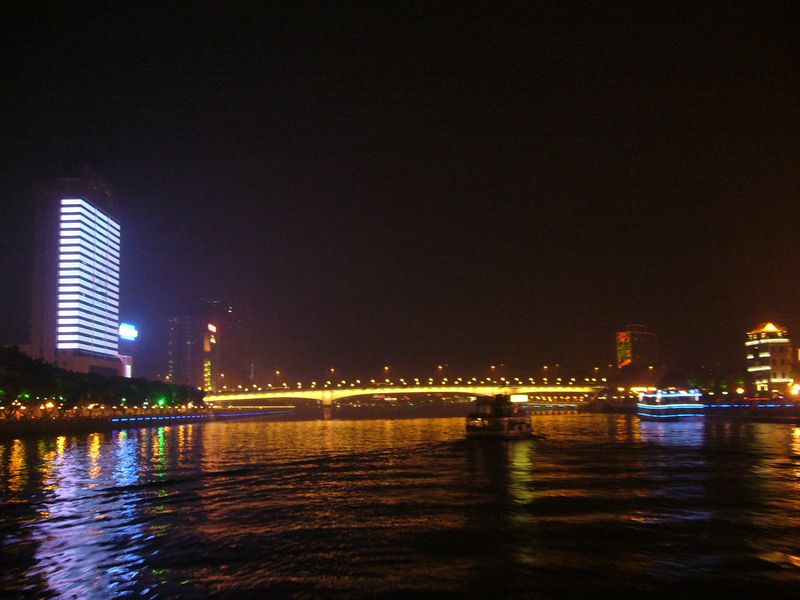 今日は10日ぶりに休みだったので、午後から広州市内に出かけました。午後6時半からの市内を流れる珠光下りに乗船したので、写真を載せます。左手のビルの電飾は、北京オリンピックのキャラクター、右奥のビルは・・・。今の時期、そうクリスマス・バージョンです。ちょうどいい暇つぶしになりました。中華のバイキングが付いて88元でした。2度目はないですが・・・。