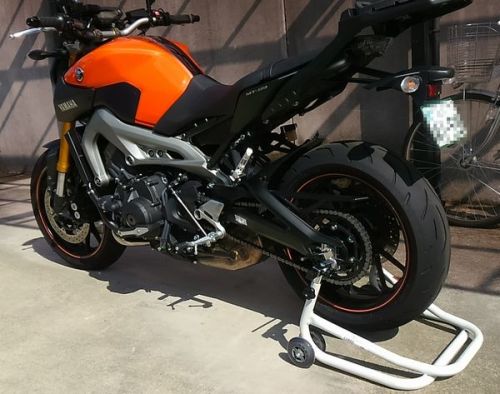 MT-09はメインスタンドがないため、チェーンのメンテをする時用にレーシングスタンドを購入。以前も1台購入(今でも錆びているがあります)、但し、ゴム受けのためスタンドを一人で立てるのが大変でした。今回は、J-Tripの「初めてのスタンド」シリーズを購入。MT-09はボルト受けも可能ですが、はやり一人でスタンドを立てるのが基本なので敢えて「初めて・・・」を購入しました。この週末にお試しをしてみるつもりです。結果をまた書き込むつもりです。乞うご期待!