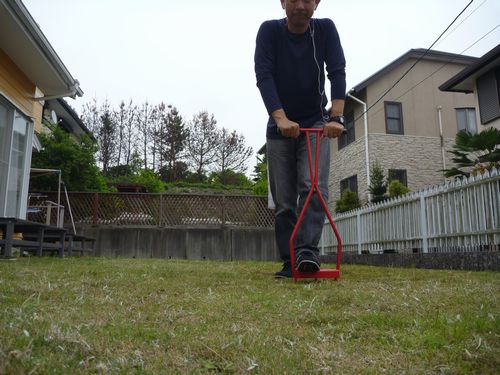 自宅の庭は、建てた頃に張った芝が一面に広がっているが、除草を殆どしていない(芝刈りは妻がやっています、感謝!)ので、雑草が大半を占めるようになってきた。先週、妻が除草剤を蒔いたらしいが、芝を復活させるには根切りをすると良いよ、とお隣さんから伺ったらしい。ということで、早速根きりの道具(スパイクリングともいうらしい)が昨日準備されていました。もちろん、私の仕事です。根きりという作業を、昨日初めて聞いたのでネットで調べてみます。ブログなどを見ていくと、「15坪を30分で」というコメントを見つけて、それぐらいでできるものなのか?と少し疑問を持ちつつ、今朝から作業を始めました。朝9時前から始めて、途中雨が降ったりして中断しながら作業を進めます。家の庭は、15m×4m+αで坪で言えば20坪相当なのですが、結局、お昼も挟んで4時間ほどかかりました。サクッと刺さる所と、根が強くてグリグリ刺しても入っていかない所があり、握っている手のひらにはマメの手前の水ぶくれが出来るし、二の腕(上腕三頭筋)はだるいし、脚も背筋もパンパンになりました。明日の朝はゴルフスクールだけど、クラブ握れないかも?根きりの結果は、どうなったら正解なんだろう?