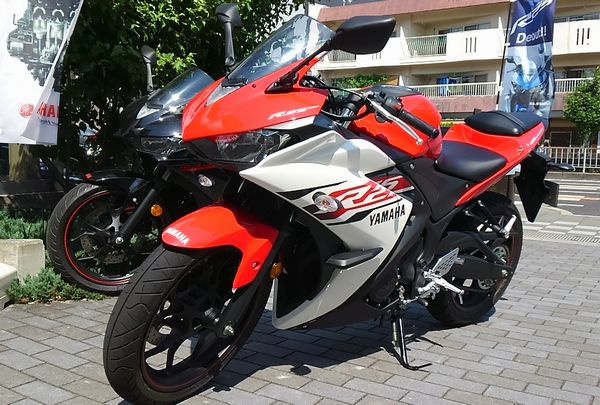 今日は午後からMT-09の1年点検に行ってきました。走行距離は3846kmくらいでした。14時に予約して、時間通りに入庫しましたが、やっぱり1時間半かかりました。点検なのに1時間以上もかかるのはどうかと。待っている間、今回はYZF-R25の試乗をしました。R3もありましたが、車検が必要なバイクであれば、もっと選択肢があるので、あえてR25に乗ってみました。街中を走る試乗ルートで、一本裏道も通るのですが、そこは一旦停止の取り締まりポイントなので、極力スピードは抑えて走ることになります。250CCなので、低速はありません。まぁ、普通です。7,000RPM以上回さないと、思ったように加速しません。車体そのものは低速でも安定しています。セカンドバイク候補でした?が、まずないという結論です。自分のバイクの点検も終わり、帰りに乗るとオイルの交換もされているので、エンジンの吹けが良くなった感じです。来週末のHMSには自走決定だな。