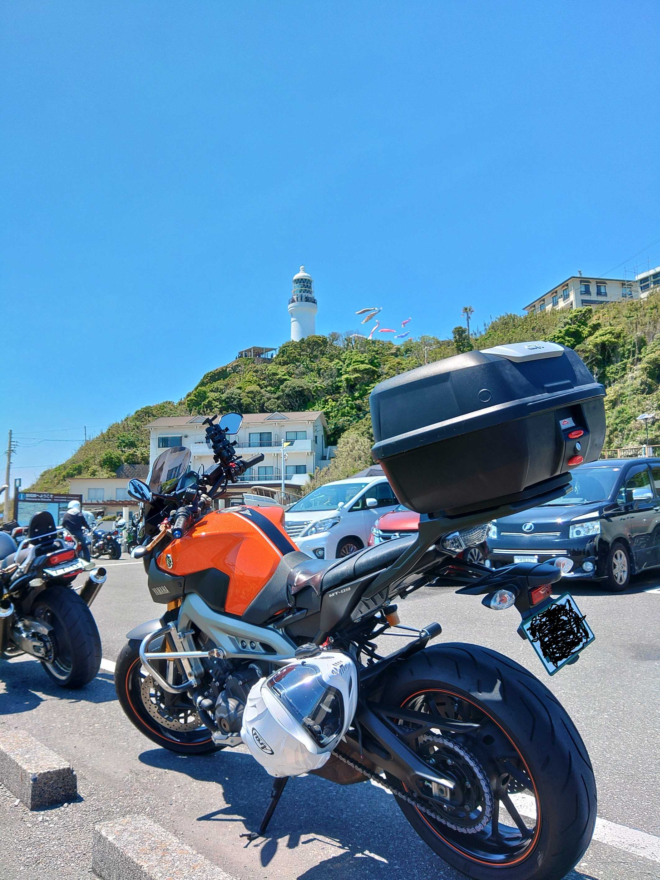 スクリーンとジャケットを新しくしたので、その確認と二輪割引を使いたくて100km以上の高速走行をする目的地を探して御前崎灯台に行くことにしました。自宅から約150km、高速は114kmといい感じです。東名の上りは朝10時くらいに音羽蒲郡IC辺りで渋滞の予想でしたが、朝9時半ごろには東名三好ICに入った途端渋滞が始まっていました。豊田JCTの合流で渋滞なのはわかっているので、我慢して走ります。80km/hくらいで走る分にはスクリーンはいい感じです。今日は風が強くて、速度以上に風が当たってきます。気温は低めで風もあるので、アニメタジャケットでは少し気温帯が低めです。ウインドウストッパー系のインナを着ていきましたが、行き帰りとも着ましたが、丁度良い温度感でした。相良牧之原ICで下り、473→150号線バイパスを走ったのですが、超快適道でそのまま御前崎灯台下の市営無料駐車場に着きました。途中P/Aでトイレ休憩をとったので、3時間くらいで到着しました。灯台近くに登りつつ、写真を撮ります。きれいな海で、水平線が湾曲して見えます。潮干狩り?をしている方も結構いました。お昼の時間帯ということもあり、近くの食事処はどこもいっぱいです。30分ほど観光をして、そのまま帰路につきました。帰りの高速浜名湖S/Aでコンビニでパンとコーヒーを買って遅い昼食を取りました。ICを下りてGSに寄って給油したら11.7L入り、25km/lくらいの燃費でした。往復で約300km走りました。お土産は冷やし安倍川餅です。スクリーンの効果はあったと思います。以前のツーリングよりは疲れが少ないと思います。アニメタジャケットはフードのバタつきがもう少し押さえたいですが、なんせカッコイイ(自分比)と思うので〇です。次は15日にクラブのツーリングで岐阜へお蕎麦ツーです。