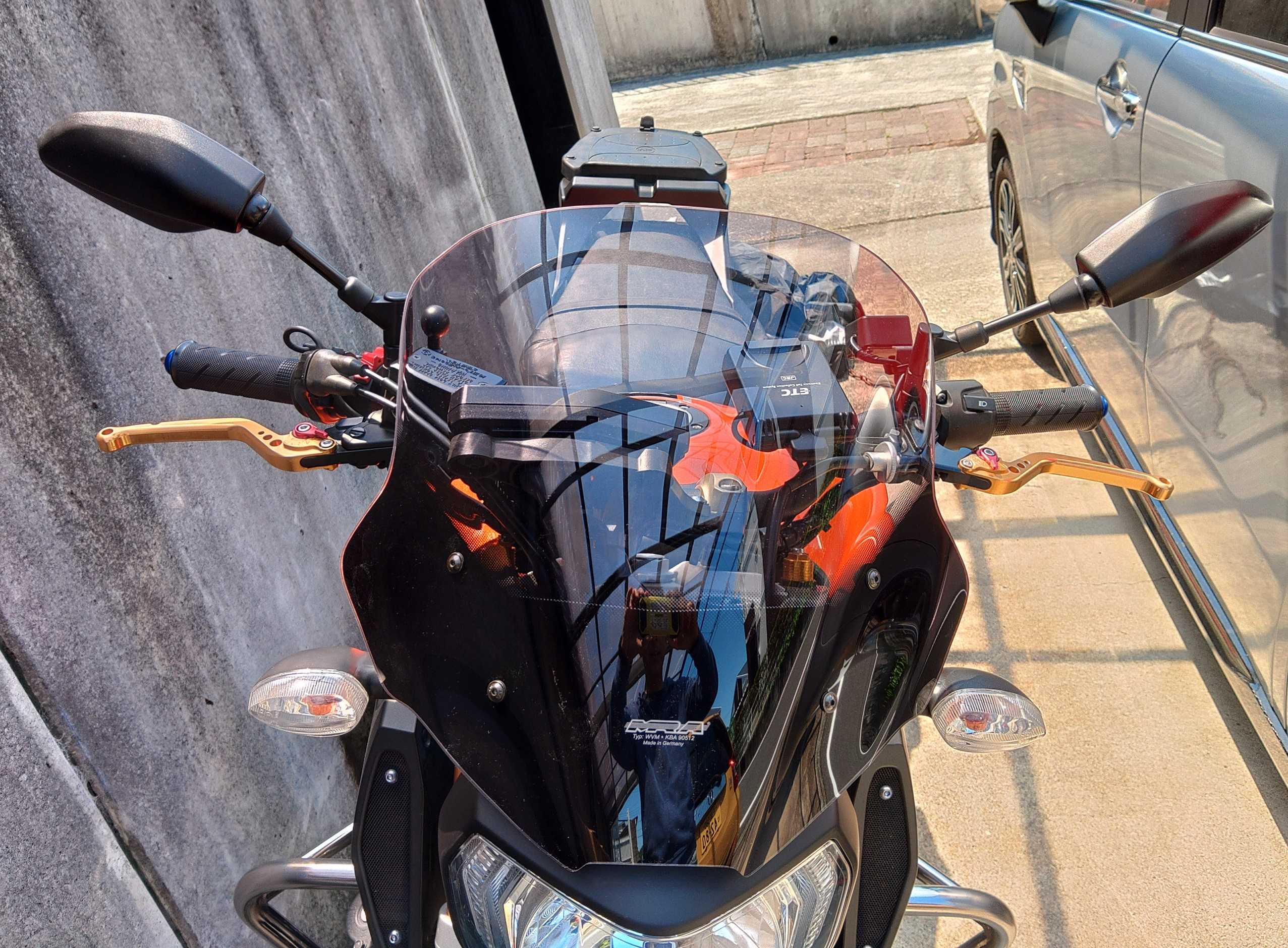 自分のMT-09は純正オプションのシールド(というよりディフューザーに近い)を使っているのですが、防風効果はほぼない。ツーリングクラブでは高速走行も多く、大型ばかりなので速度もそこそこ速い。ということで、MRAのスクリーンに交換しました。色はクリアとスモークがあったのですが、クリアの納期は不明でスモークは在庫ありだったので、Webikeにて購入しました。連休に入ってやっと時間ができたので、今日作業をしました。交換は1時間くらいでしたが、一番時間がかかったのは、スクリーンを固定するラバーナット(固定用ブラケットの穴に差し込んで、ボルトで締め上げるとゴムがつぶれて固定され、振動を吸収するものだと思います。この1つが穴に入らない(他の穴は特に困らなかったので、穴が1つだけ小さかったようです。少し穴をサンドペーパーで削ったり、ラバーをカッターナイフで削ったりしながら何とかナット部を穴に通して、最後はペンチで挟んで引き込みました。ナット部が通ればあっさり抜けてきました。付けた感じはいい感じです。ETCとも干渉はなく、後はスマホスタンドとの関係だけですね。明日お試しで100kmほど走ってみようかな。