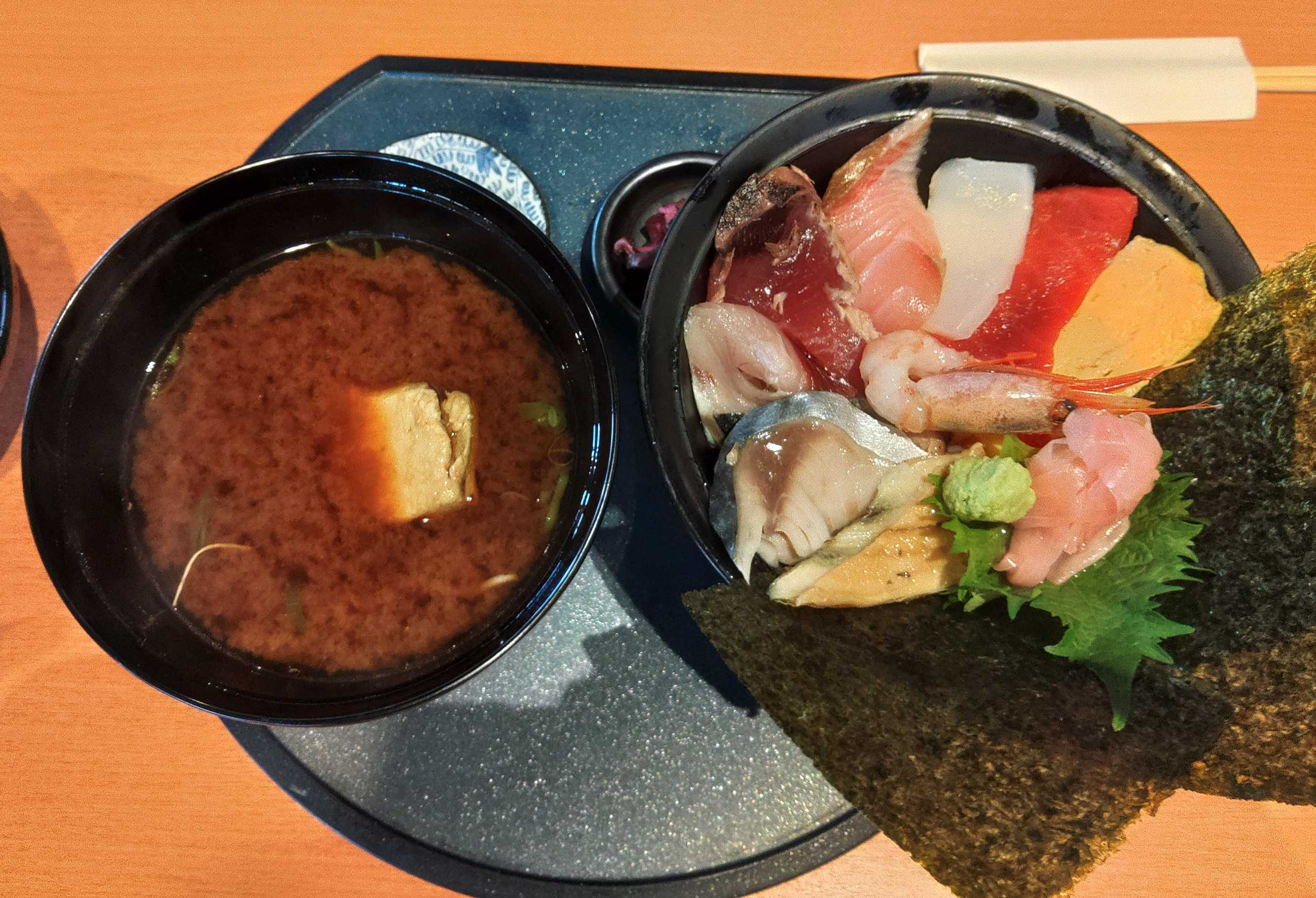 昨日の御前崎では食事処が混んでいてスルーして帰ってきたので、今日は息子とマルサ水産に行って海鮮系の丼を食べてきました。お昼の時間帯は混んで待ちが出ているのかと思って、少し早めに行きましたが、駐車場は残り2か所空いていて、店内は8割くらい埋まっている感じでした。なので、待ちはなしでした。息子はマルサ海鮮丼(写真上側)、私はバラちらし丼(下側)を頼みました。ご飯は少し少なめでしたが、おいしくいただきました。因みにお昼に限ってか、ホットコーヒーは無料でした(セルフですが)。昨日からの少し引っ掛かっていた感じがなくなりました。