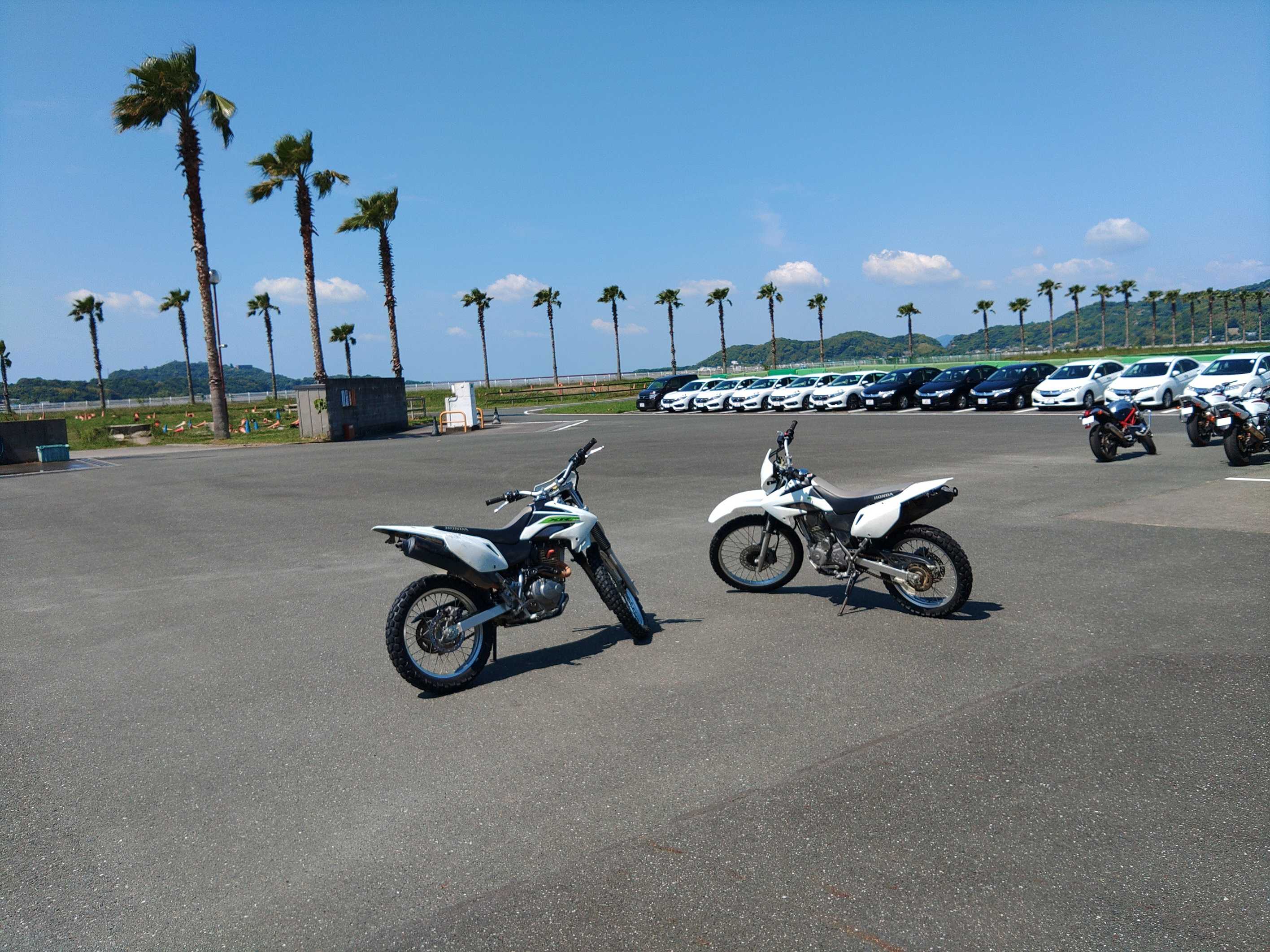 3連休最終日の晴天の日のオフ中です。参加者は9名、バイクは230、イントラは真新しい黄色いジャージのN村さん。オフエリアは草ボーボーで滑りまくりです。敢えてアクセルターンなども練習したいのですが、都合5回ほど転倒しました。久しぶりに擦りむきました。230はハンドル以外に掴む場所がなく、フラットソールのオフブーツでは踏ん張りも効かず、転倒したらバイクを起こせません。1回は自分で何とか起こしましたが、他は全て助けてもらいました。次からは125かな。今日の指導は「切り返しでお尻を上げずに反対の角へ荷重する」でした。確かにしっかり荷重できます。次回は14日に中上級です。