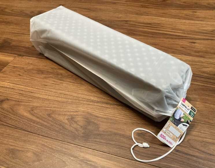 バイク仲間とBBQして一泊する予定です。場所はキャンプ場で宿泊はトレーラーキャビンとのことですが、布団はなく、必要に応じてシュラフや毛布をレンタル(700円)とのことでした。正直、誰が使ったかわからない毛布は少し気になるので、ヨガマットとタオルケットと枕を持ち込もうと思っていますが、板の間にヨガマットだけでは硬いので、ダイソーのレジャーマットを購入しました。これをヨガマットの下に敷くといい感じです。550円なので、レンタルより安いからいいですね。