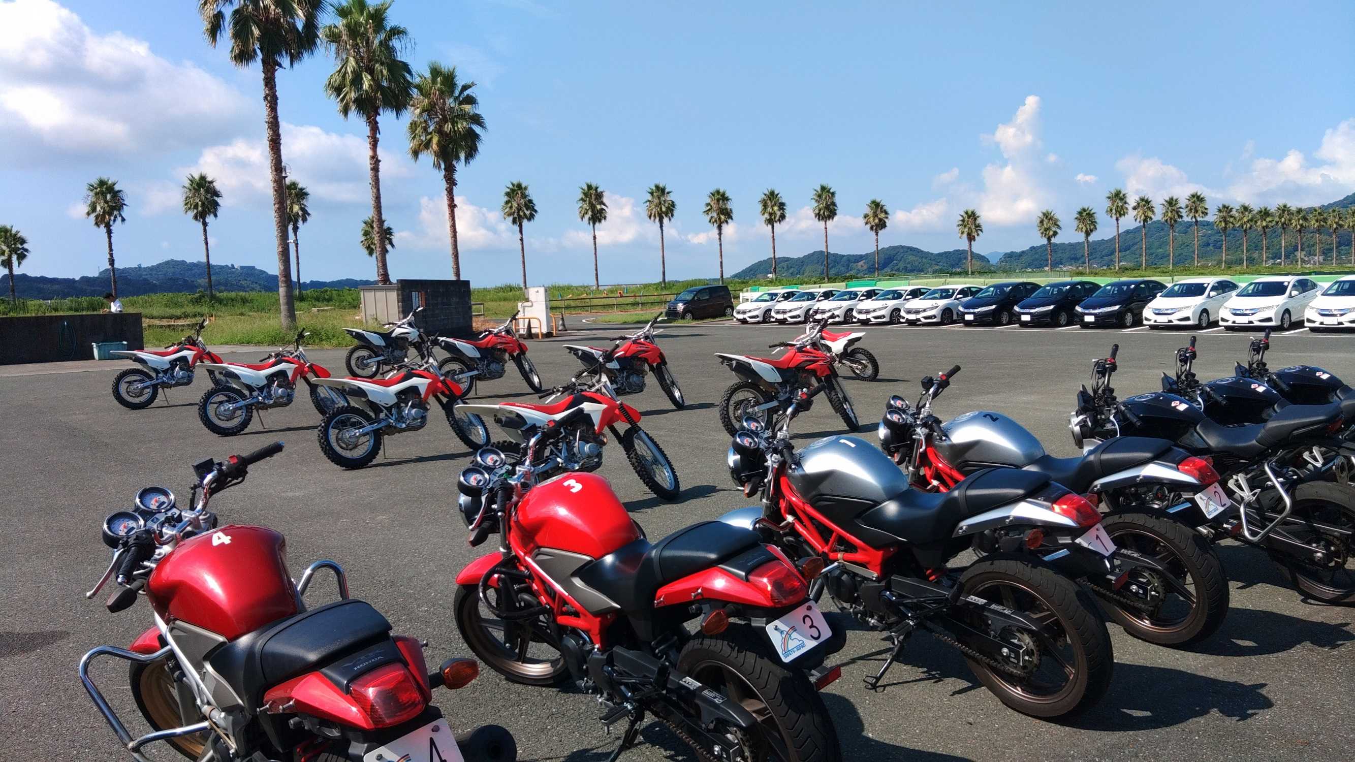 1か月半ぶりにHMSオフ中を受講しました。1か月半経つのに気温はほぼ変わらない、蒸し暑い1日でした。参加者は8名、イントラはY木下さん、バイクは230。手前はHondaGO BIKEに参加用のバイクです。まずはオンのコースを少し走って、緩い雑草の上のオフセットを走ります。今日のバイクはアクセルが異常に重くて、開けるのも大変、手を放してもアクセル戻らず回転が上がったままです。1日通して使ったので、右手の親指と人差し指の革が剥けました。握力もほぼなくなりました。Y木下さんは中級独り立ち初日ということもあり、私に対しては特にご指導はなく、偶に追走していただいても(というより声をかけて)、走行後はほとんど雑談で休憩という感じでしたが、今日は連続走行はしんどいのでちょうどよかったです。お昼ご飯は新作の鶏おろし焼き弁当です。あっさりしていて食べやすくいい感じです。今日の収穫は、特に右ターンで右手の握り方がきまるようになり、バランスよくバイクに乗ることができました。次回は来週かな?