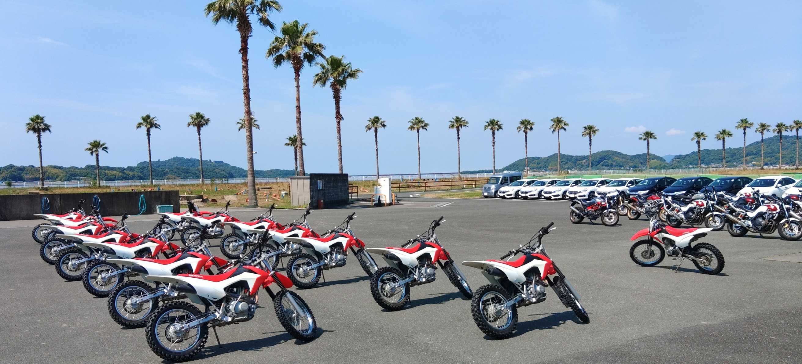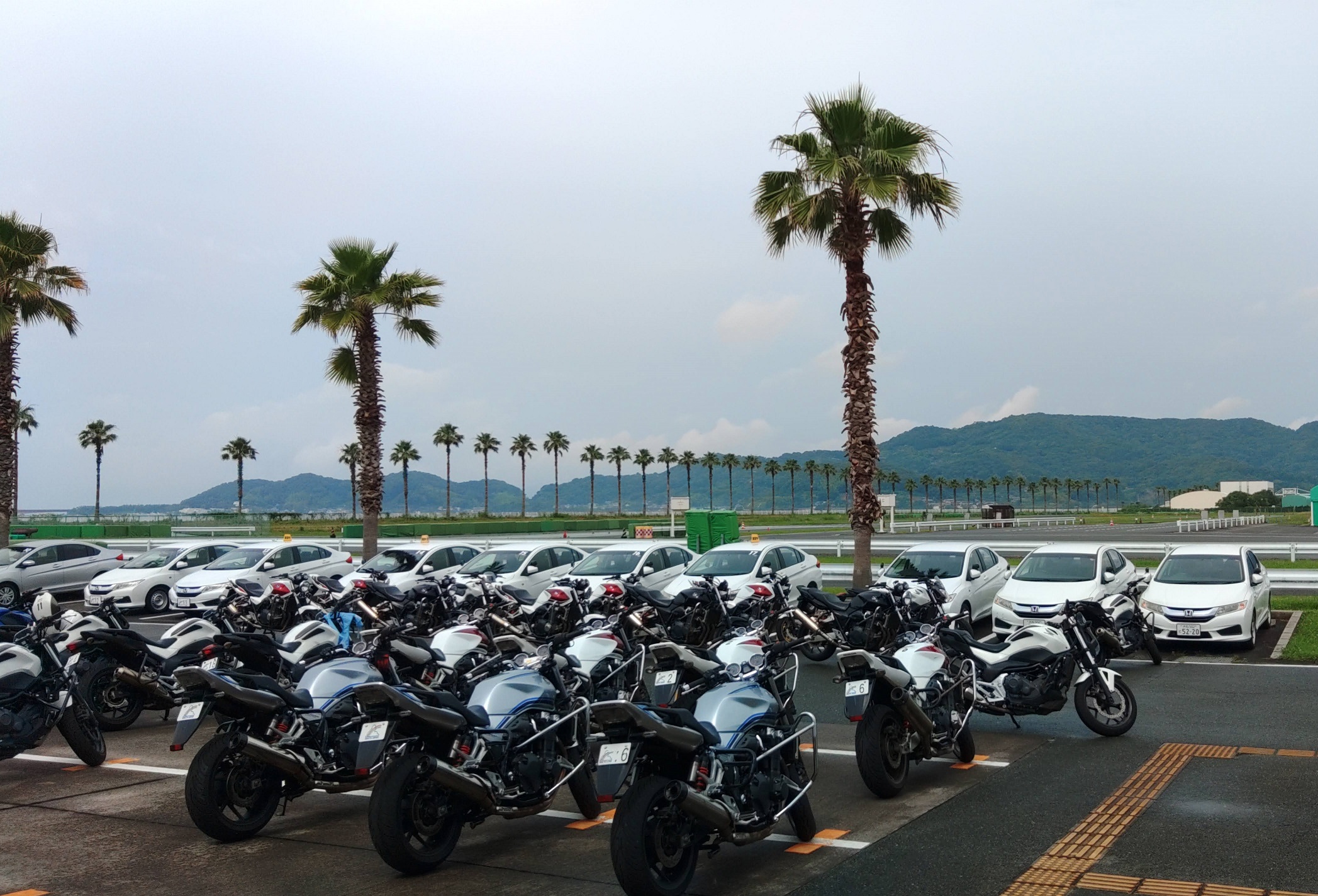 和光から浜名湖に戻ってきて2か月経つO島さんがメインイントラ(サブはY木下さん)のスクールで、一味違う内容でした。参加者数は、最近オフスクールが減っているからか14名まで拡大されていました。コンディションはいい感じで、路面はガチガチの表面はサラサラ。まずは座る位置、これは他のイントラさんとあまり変わらずバイクの重心に座りましょうとのこと。次は脚の出し方、余り上に上げずに3点支持(来たぁ!)もあり。ギアチェンジは、一般的なアクセルオフ+クラッチ切ってギアチェンジ、ロードレース的なアクセルオフでギアチェンジ(今はオートシフターだけど)、オフロードはアクセル全開でクラッチだけ切ってギアチェンジ(初めて知った)。これを使って普段ストパイは走るエリアで隣の人と競争(!)でした。バンクはほとんどのイントラさんは平面とバンクの境界を走るように指導するけど、O島さんは余り上にはいかないようにと言う、またリアブレーキターンも練習するように言われました。これだけは和光に行く前には私はできなかったけど、今は何となくできるようになっているので、「その調子で確率を上げて」とご指導でした。フープスも普段は中央にパイロンがあるのですが、今回は左右にあり、スピードがでます。グリップも良いので、楽しい一日でした。次回は30日にオン中上級です。
