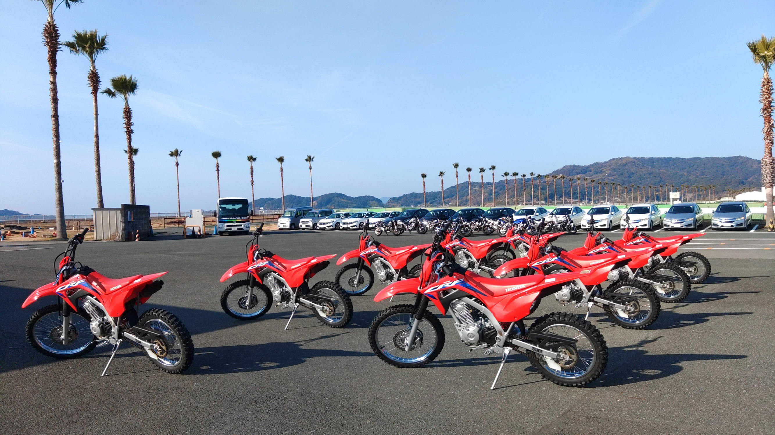 先週に続きHMSに参加です。午前中は晴れていて暖かったのですが、午後になって曇った途端に寒くなりました。参加者は9名、中級が初めての方が1名いましたが、そん色なく走行されていました。イントラはT名網さん、バイクは全てインジェクションです。まず最初は珍しくフラットダートからです。その後、8の字が午前中のメニューです。ここで、「後輪を滑らせた場合は、ハンドルを押さえ気味、滑らせない場合は、外の腕を前に押すイメージ」とご指導を受けました。午後からストパイ+オフパイを立ち姿勢で走った後、コースに出て上下動をスタンディングで練習しました。ここでテーブル(山)も走ったのですが、1つは完全に削られていて、他の2つは低めに長めになっていました。バイクはインジェクションになってから、取説で「ジャンプはNG」と記載があるらしく、ジャンプ禁止とのことですが、はずみで飛んでしまうのは仕方がない?とも言われました。その際の姿勢やアクセル、ブレーキなどしっかりと説明がありました。参加者も、飛んでしまったものはしかたがない、と言いつつ、私も含めタイヤが結構浮いている感じでした。最後はしっかりと走り込んだので、それなりに汗をかきました。次回は今週末に中上級です。