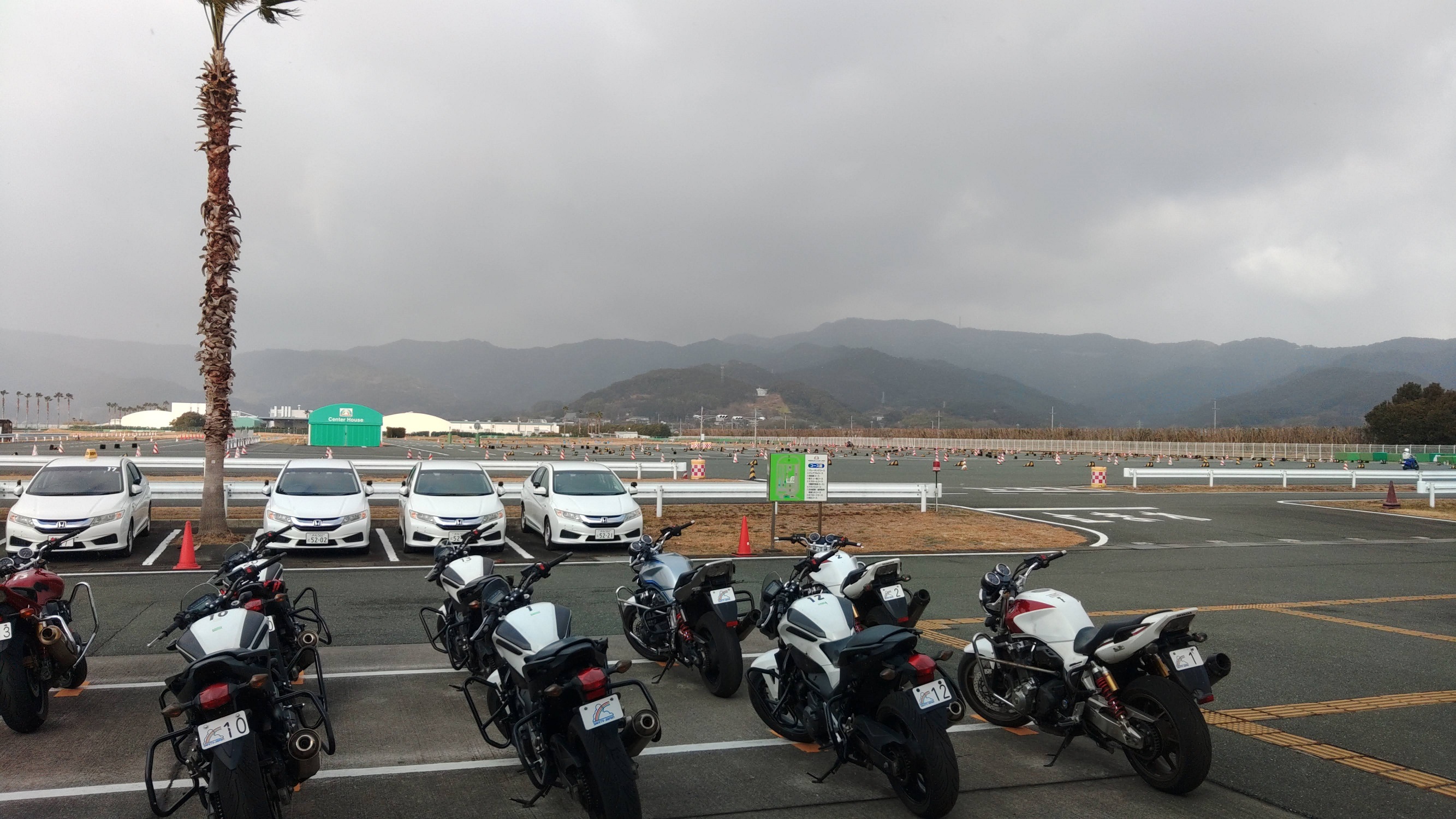 起きたら道は真っ白でしたが、積もるほどではなかったのです。ただ高速は何時閉鎖になるかは読めないので、普段より30分ほど早く出発しました。特に渋滞などはなく、30分以上早く着きそうだったので、途中PAでトイレ休憩をして到着。現地は小雪が舞っていて、結局午後2時前くらいまで降ったり止んだりで、走り出した時は特に風もあり顔面に雪が当たって、めちゃくちゃ痛かったです。参加者は枠いっぱいの10名、イントラはO島さん。年明けすぐに桶川に行っていて、湖畔でのスクールは今年初とのことでした。テーマはパーシャルをうまく使い、減速しない(もちろん実際はしますが)。得意の親指を前に突き出すことで細かいアクセルコントロールをする走り方です。私自身は視線とニーグリップを意識するという初心に帰る練習を意識しました。ニーグリップをすることで、進行方向に外側の膝が押し込む感じにターンの切れが出た気がしたのですが、O島さんの後を走っても離される一方でした。過去のスクールでは基本メリハリをつけて加速、減速、加速を切り替えて走るイメージでしたが、今回はパーシャルを使い、あまり減速せずに(速度を落とさないイメージ)走る、すると、加速もさほどしなくても良い、ということで、結局速いということらしい。難しい。61kmほど走りました。次回はまだ確定予約はありません。