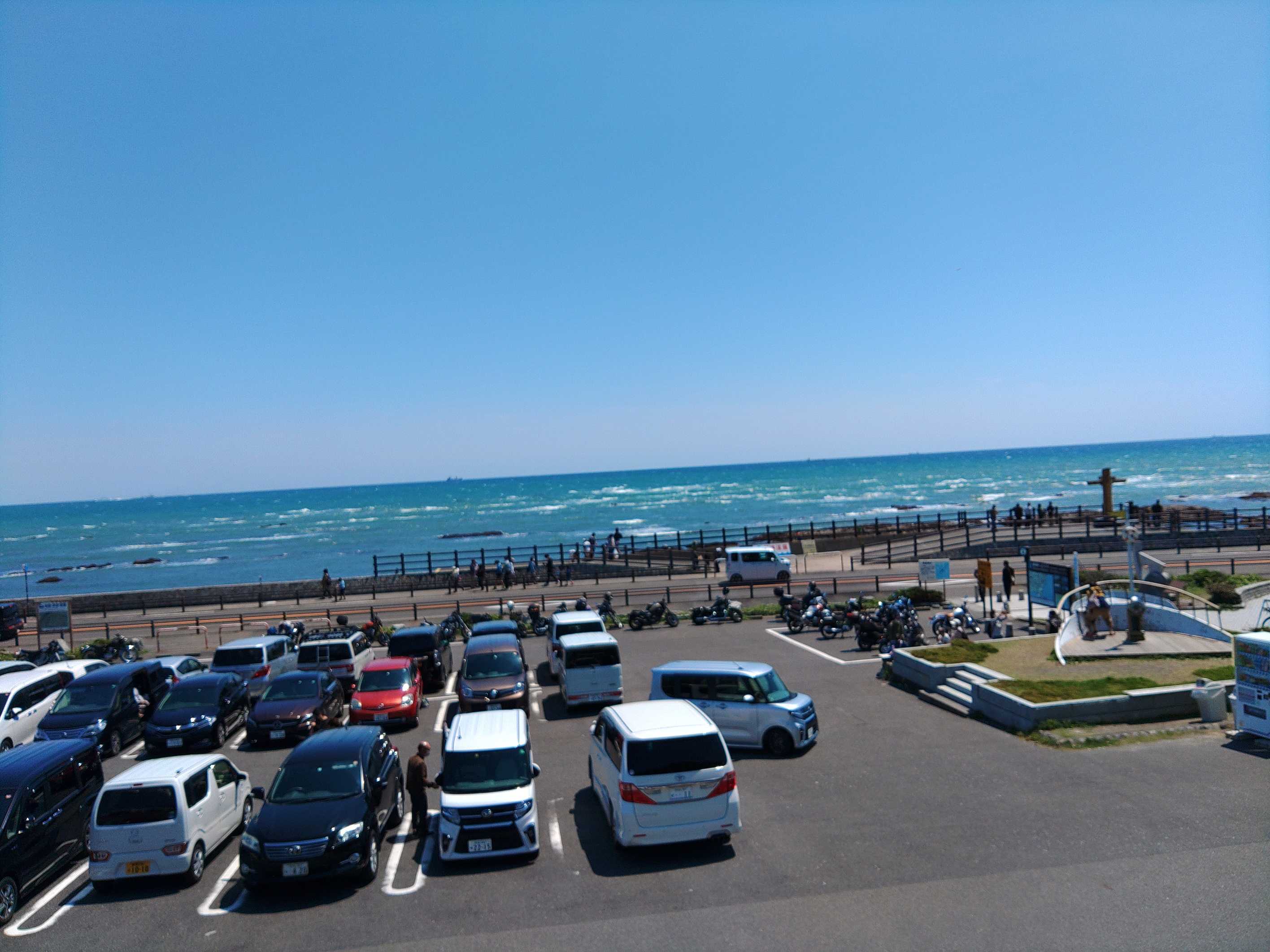 相良牧之原ICで下り、473→150号線バイパスを走ったのですが、超快適道でそのまま御前崎灯台下の市営無料駐車場に着きました。