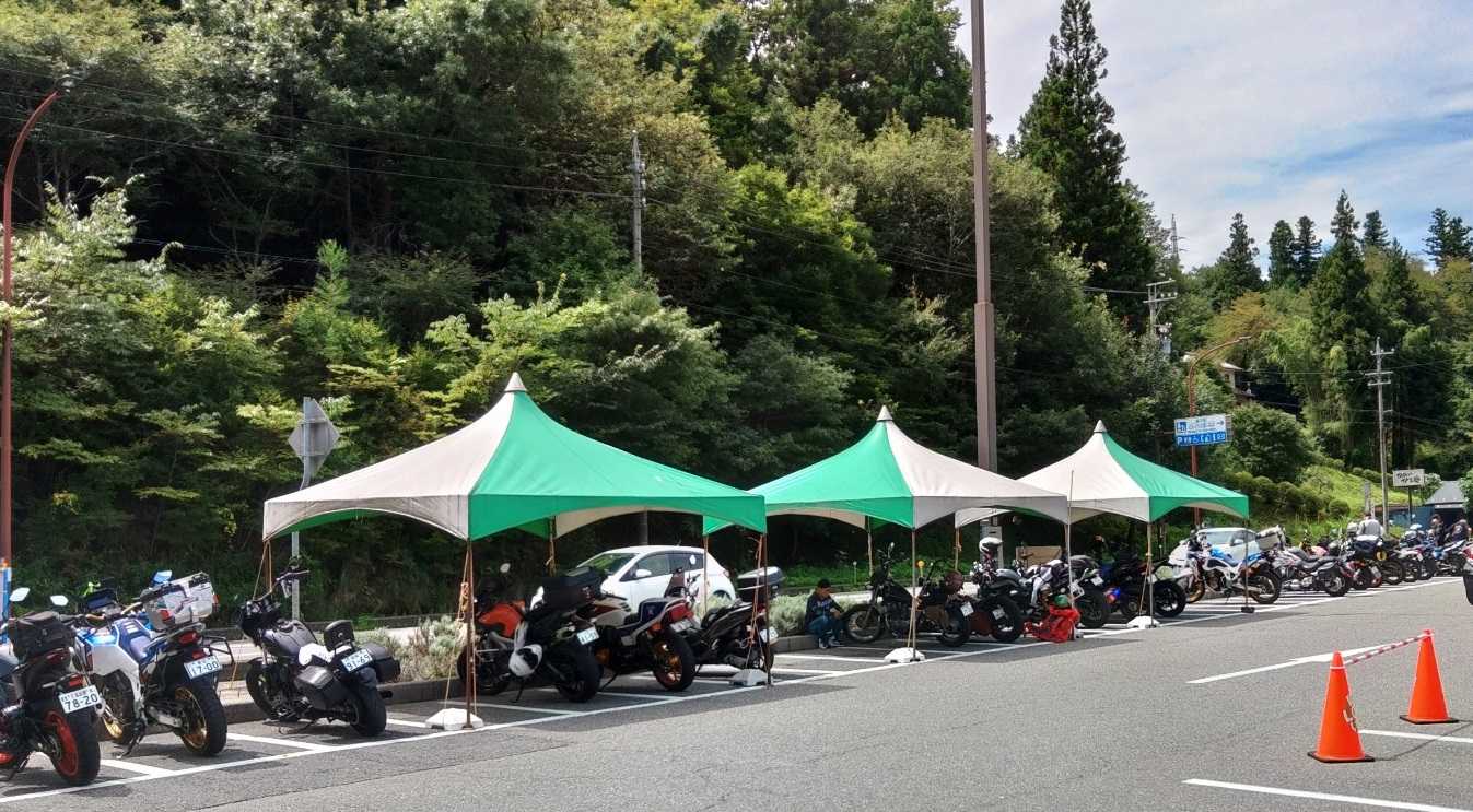 バイクを停めた場所がテントの下で、シートもタンクも熱くならずよかったです。