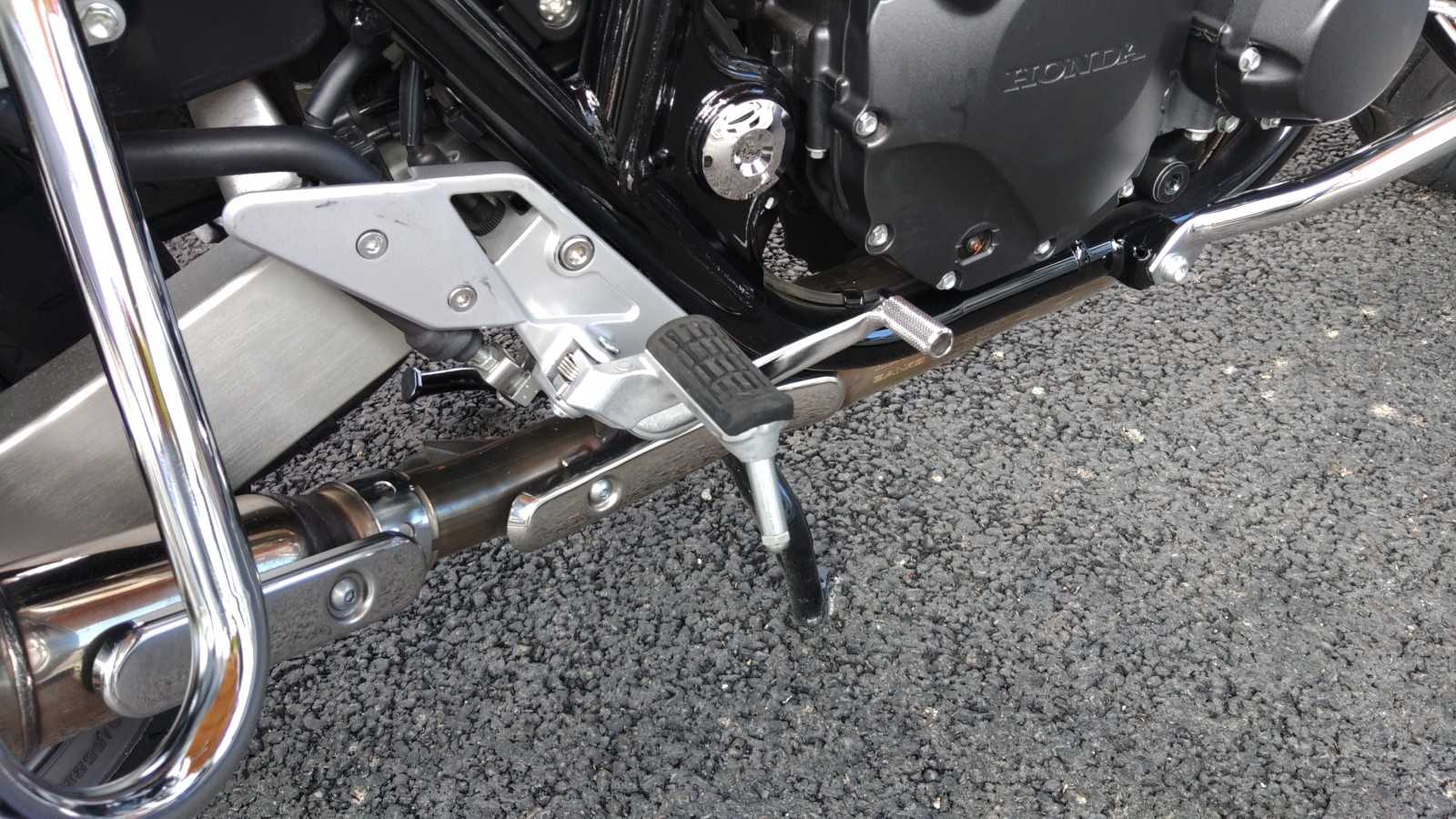 白バイのステップをよく見ると、ラバーがすりつぶれていて(写真とは別の白バイ)、前にオフセットして取り付けてありました。