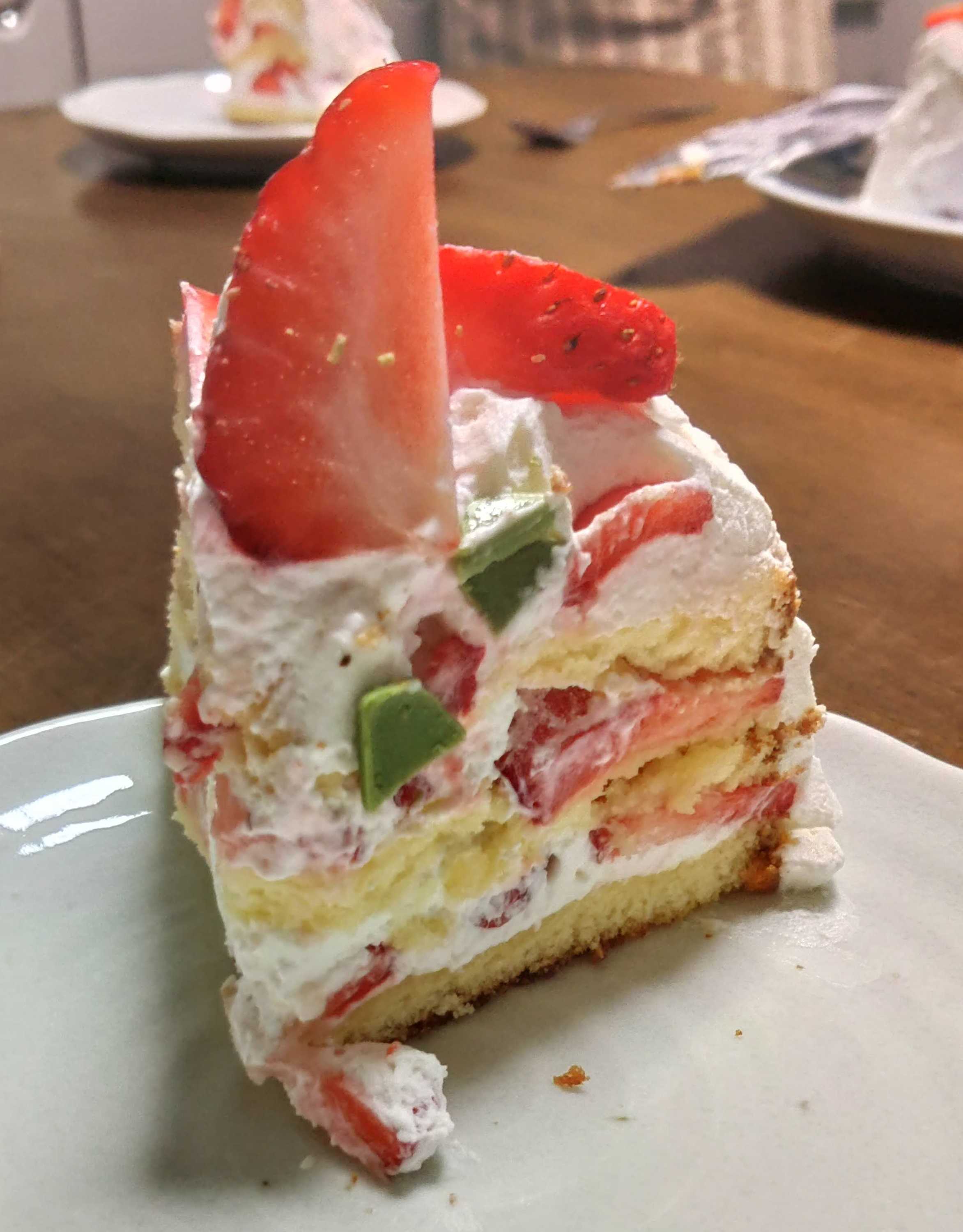 最近の値上げラッシュでイチゴも高かったとのことでしたが、2台積みのおいしそうなケーキです。