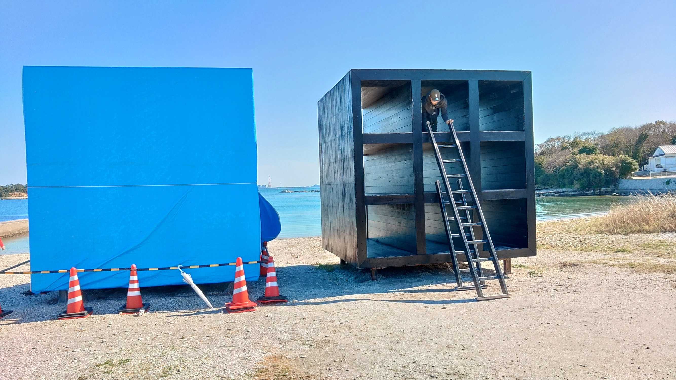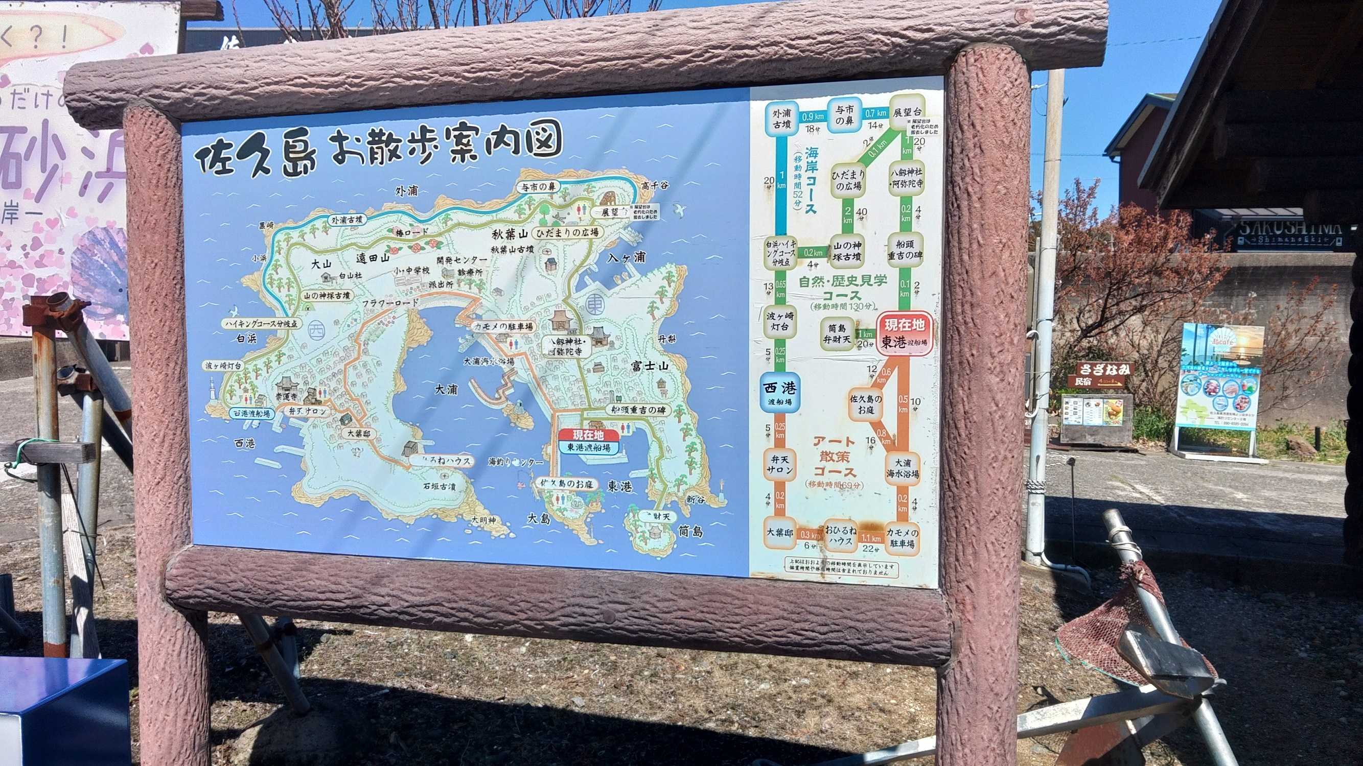 点在しているアート的な建造物を見ながらほぼ島内を一周してカフェで休憩して東港に戻りました。