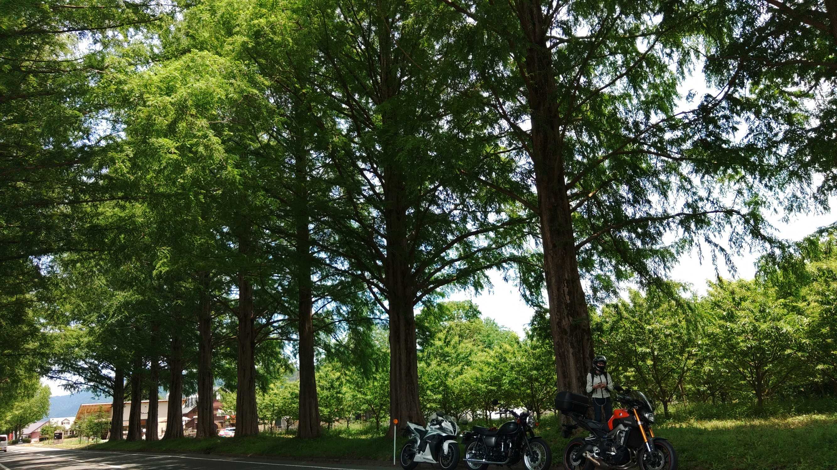 北陸道は木の本IC付近まで1車線制限となり、渋滞でしたが、その後は一般道は流れていて10時半過ぎにメタセコイア並木道付近のマキノピックランドに到着しジェラードを食べ、並木の下で写真を撮り、黒壁スクエア付近の駐輪場へ移動します。