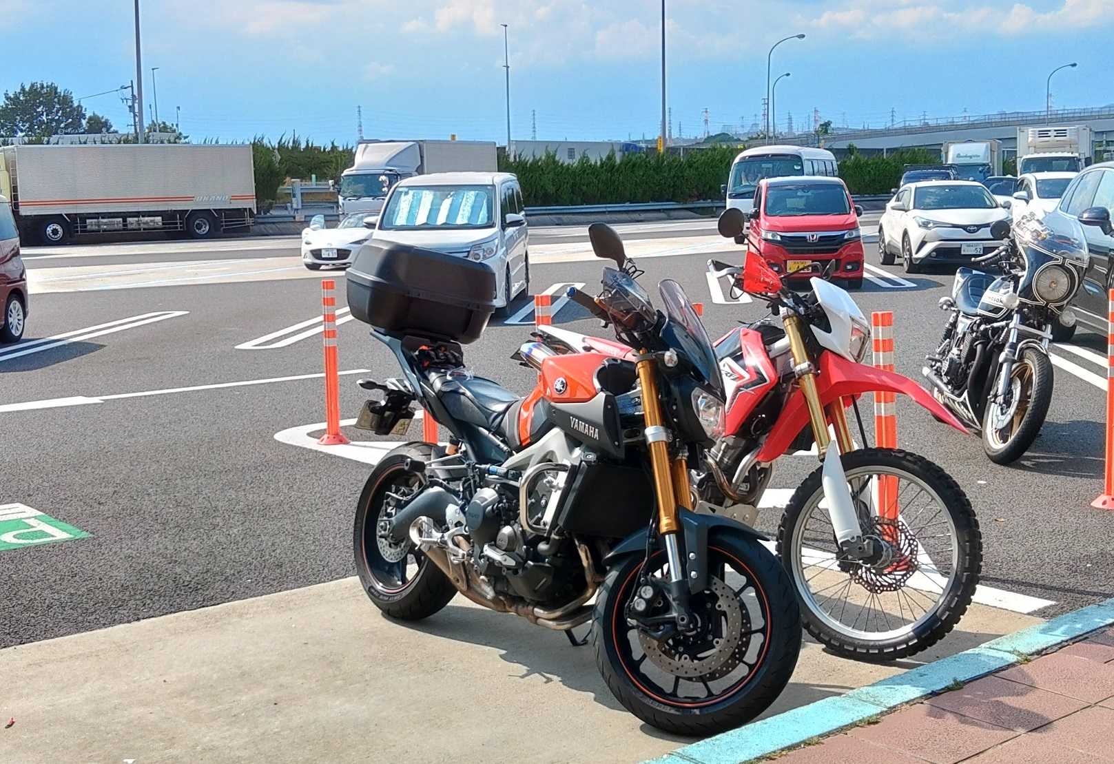 午後からは大雨が近づいているということで、1時半には下山を始めて、途中琵琶湖沿いを走行していたらちょっと強めの雨に遭遇しましたが、名神に出たら暑いくらいになったので、伊吹PAでカッパを脱いで走行しました。